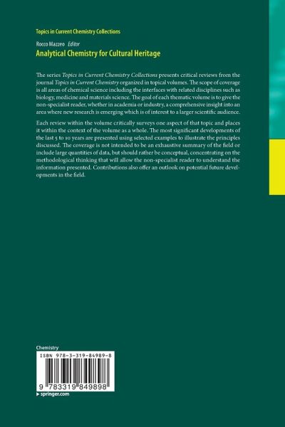 "The book is a collection of review articles, which provide a wide overview of very different analytical techniques applied to cultural heritage addressing a number of applications concerning archaeological materials, paintings and artwork. In every review article, an up-to-date reference list gives the reader the opportunity for further, more specialist reading. The book is addressed to established scientists and graduate students, and in general to those who are responsible for research in the cultural heritage field." (Maria Careri, Analytical and Bioanalytical Chemistry, September, Vol. 409 (22), September, 2017)