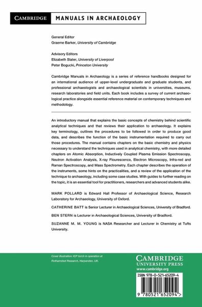 This book is an introductory manual that explains the basic concepts of chemistry behind scientific analytical techniques and that reviews their application to archaeology. It explains key terminology, outlines the procedures to be followed in order to produce good data, and describes the function of the basic instrumentation required to carry out those procedures. The manual contains chapters on the basic chemistry and physics necessary to understand the techniques used in analytical chemistry, with more detailed chapters on Atomic Absorption, Inductively Coupled Plasma Emission Spectroscopy, Neutron Activation Analysis, X-ray Flourescence, Electron Microscopy, Infra-red and Raman Spectroscopy, and Mass Spectrometry. Each chapter describes the operation of the instruments, some hints on the practicalities, and a review of the application of the technique to archaeology, including some case studies. With guides to further reading on the topic, it is an essential tool for practitioners, researchers and advanced students alike.