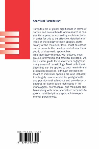 Parasite infections are very widespread; however, effective therapeutics are not yet available. This manual with detailed protocols for analysing parasitological properties, pathways or interactions with hosts should help to develop new diagnostic tests, therapeutic approaches or even vaccination.