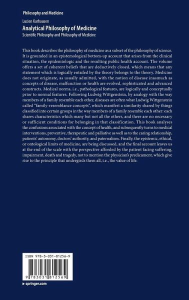 This book describes the philosophy of medicine as a subset of the philosophy of science. It is grounded in an epistemological bottom-up account that arises from the clinical situation, the epidemiologic and the resulting public health account. The volume offers a set of coherent beliefs that are deductively closed, which means that any statement which is logically entailed by the theory belongs to the theory. Medicine does not originate, as usually admitted, with the notion of disease inasmuch as concepts of disease, malfunction or health are evolved, sophisticated and advanced constructs. Medical norms, i.e., pathological features, are logically and conceptually prior to normal features. Following Ludwig Wittgenstein, by analogy with the way members of a family resemble each other, diseases are often what Ludwig Wittgenstein called "family-resemblance concepts", which manifest a similarity shared by things classified into certain groups in the way members of a family resemble each other: each shares characteristics which many but not all the others, and there are no necessary or sufficient conditions for belonging in that classification. This book analyses the confusions associated with the concept of health, and subsequently turns to medical interventions, preventive, therapeutic and palliative as well as to the caring relationship, patients' autonomy, doctors' authority, and paternalism. Finally, the epistemic, ethical, or ontological limits of medicine, are being discussed, and the final account leaves us at the end of the scale with the perspective afforded by the patient facing suffering, impairment, death and tragedy, not to mention the physician's predicament, which give rise to the principle that undergirds them all, i.e., the value of life.