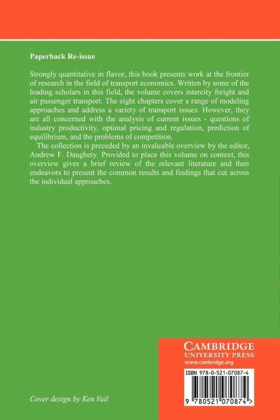 First published in 1985 and strongly quantitative in flavour this book presents work that was at the frontier of research in the field of transport economics.