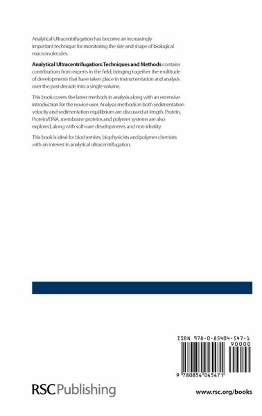 Analytical ultracentrifugation has become an increasingly important technique for monitoring the size and shape of biological macromolecules. Analytical Ultracentrifugation: Techniques and Methods contains contributions from experts in the field, bringing together the multitude of developments that have taken place in instrumentation and analysis over the past decade into a single volume. This book covers the latest methods in analysis along with an extensive introduction for the novice user. Analysis methods in both sedimentation velocity and sedimentation equilibrium are discussed at length. Protein, protein/DNA, membrane proteins and polymer systems are also explored, along with software developments and non-ideality.
