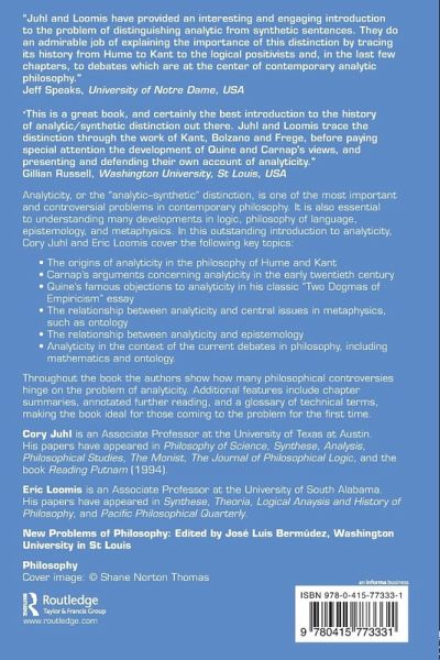 'Juhl and Loomis have provided an interesting and engaging introduction to the problem of distinguishing analytic from synthetic sentences. They do an admirable job of explaining the importance of this distinction by tracing its history from Hume to Kant to the logical positivists and, in the last few chapters, to debates which are at the center of contemporary analytic philosophy.' - Jeff Speaks, University of Notre Dame, USA
