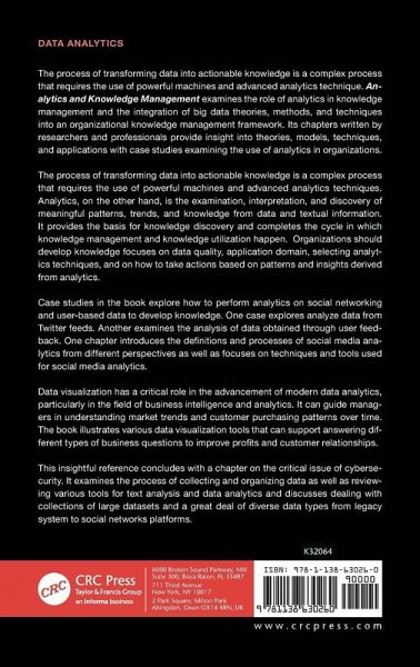 This book examines the role of analytics in knowledge management including the integration of analytics theories, methods and technologies into knowledge management processes. It aims to identify the role of analytics in knowledge management and how analytics can be seamlessly integrated in the knowledge management processes.