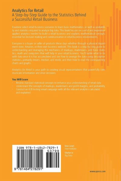 Examine select retail business scenarios to learn basic mathematics, as well as probability and statistics required to analyze big data. This book focuses on useful and imperative applied analytics needed to build a retail business and explains mathematical concepts essential for decision making and communication in retail business environments.