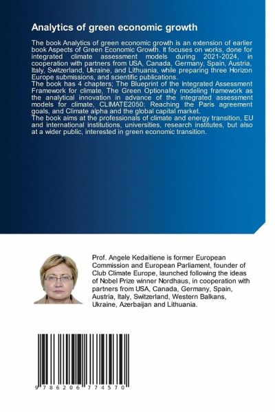 The book Analytics of green economic growth is an extension of earlier book Aspects of Green Economic Growth. It focuses on works, done for integrated climate assessment models during 2021-2024, in cooperation with partners from USA, Canada, Germany, Spain, Austria, Italy, Switzerland, Ukraine, and Lithuania, while preparing three Horizon Europe submissions, and scientific publications. The book has 4 chapters; The Blueprint of the Integrated Assessment Framework for climate, The Green Optionality modeling framework as the analytical innovation in advance of the integrated assessment models for climate, CLIMATE2050: Reaching the Paris agreement goals, and Climate alpha and the global capital market. The book aims at the professionals of climate and energy transition, EU and international institutions, universities, research institutes, but also at a wider public, interested in green economic transition.