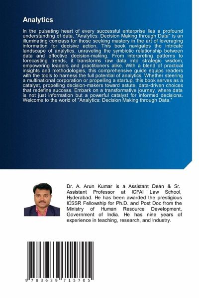 In the pulsating heart of every successful enterprise lies a profound understanding of data. "Analytics: Decision Making through Data" is an illuminating compass for those seeking mastery in the art of leveraging information for decisive action. This book navigates the intricate landscape of analytics, unraveling the symbiotic relationship between data and effective decision-making. From interpreting patterns to forecasting trends, it transforms raw data into strategic wisdom, empowering leaders and practitioners alike. With a blend of practical insights and methodologies, this comprehensive guide equips readers with the tools to harness the full potential of analytics. Whether steering a multinational corporation or propelling a startup, this book serves as a catalyst, propelling decision-makers toward astute, data-driven choices that redefine success. Embark on a transformative journey, where data is not just information but a powerful catalyst for informed decisions. Welcome to the world of "Analytics: Decision Making through Data."