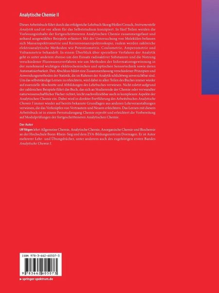 Nicht zuletzt aufgrund der zahlreichen Beispiele führt das Buch, das sich an Studierende der Chemie oder verwandter naturwissenschaftlicher Fächer richtet, leicht nachvollziehbar auch in komplexere Aspekte der Analytischen Chemie ein. Dabei wird in direkter Fortführung des Arbeitsbuches Analytische Chemie I immer wieder auf bereits bekannte Grundlagen aus anderen Lehrveranstaltungen verwiesen, die das Verknüpfen von Vertrautem und Neuem erleichtern. Das Lernen mit diesem Arbeitsbuch ist in einem Fernstudiengang Chemie erprobt und erleichtert die Vorbereitung auf Modulprüfungen der fortgeschritteneren Analytischen Chemie.