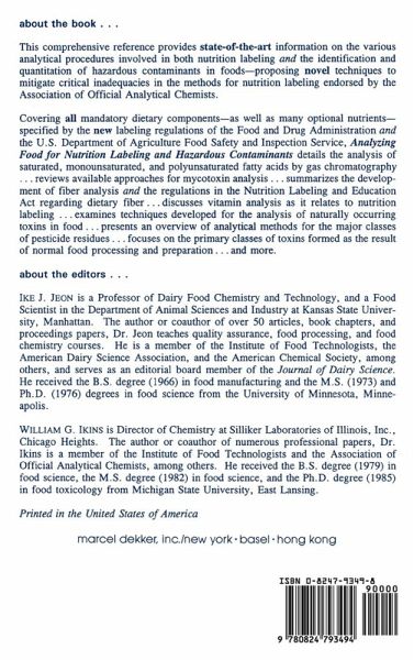 This work provides up-to-date information on the various analytical procedures involved in both nutrition labelling and the identification and quantitation of hazardous chemicals in foods. It assesses the relative strengths of traditional and modern analysis techniques. The book covers all mandatory dietary components and many optional nutritients specified by the new labelling regulations of the Food and Drug Administration and the US Department of Agriculture Food Safety and Inspection Service.