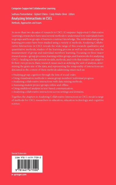 Analyzing Interactions in CSCL: Methodology, Approaches, and Issues deepens the understanding of ways to document and analyze interactions in CSCL and informs the design of the next generation of CSCL tools. It provides researchers with several alternative methodologies, theoretical underpinnings of the methods used, data indicating how the method worked, guidance for using the methods, implications for understanding collaborative processes and their effect on learning outcomes and implications for design.