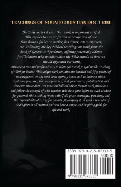 Discover a true and profound way to relate your work to God in The Teaching of Work in Psalms! This unique work contains one hundred and fifty psalms of encouragement on the most contemporary issues such as business ethics, regulatory pressures, the consequences of bad government, globalization, and domestic misconduct. Get practical biblical advice for real work situations and follow the example of wise teachers who have gone before us, such as those for personal ethics, linking work with God's grace, marriages, parenting, and the responsibility of caring for parents. Accompany it all with a reminder of God's glory in all creation and you have a unique and inspiring guide for life and work.