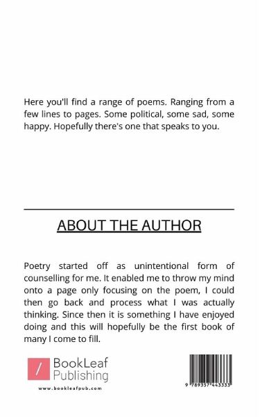 Poetry started off as unintentional form of counselling for me. It enabled me to throw my mind onto a page only focusing on the poem, I could then go back and process what I was actually thinking. Since then it is something I have enjoyed doing and this will hopefully be the first book of many I come to fill.