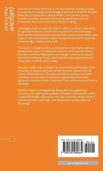 This collection explores the nature and role of ethics within anarchist thought and practice, examining normative, meta-ethical and applied ethical issues through some of the theoretical insights of anarchism. It comprises contributions from international scholars working within the fields of philosophy and political theory.