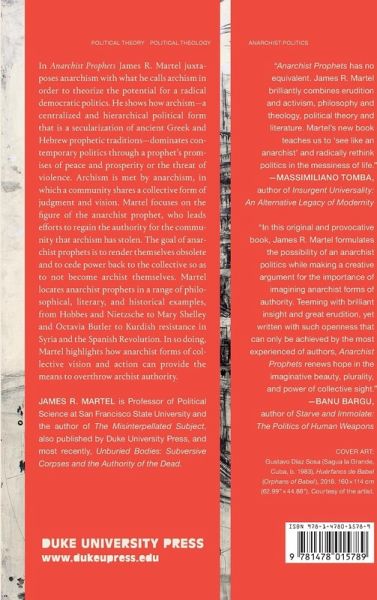 James R. Martel juxtaposes anarchism with what he calls archism—a centralized and hierarchical political form based in ancient Greek and Hebrew prophetic traditions—in order to theorize the potential for a radical democratic politics.
