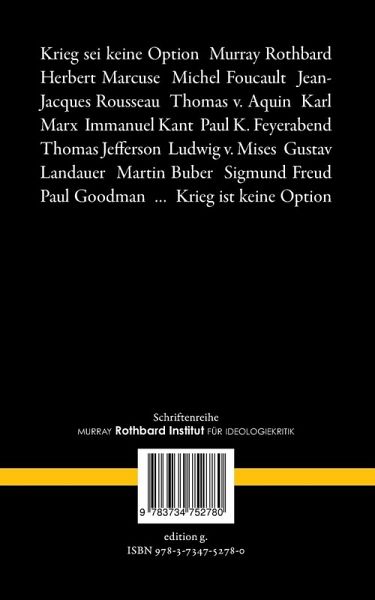 »Krieg ist keine Option«, lautet das Leitmotiv des Essays: Die Suche nach den Bedingungen, unter denen Frieden statt Krieg geführt wird. Im Laufe ihrer Kulturentwicklung habe, schrieb Sigmund Freud 1932 in düsterer Vorahnung, die Menschheit zahlreiche, ja unaufhörliche Kleinkriege gegen seltene, aber umso mehr verheerende Großkriege eingetauscht. Das nächste, heute erreichte Stadium ist der unaufhörliche Großkrieg gegen die Kleinkriege (»Terror«).Ein Zusammenleben, das demgegenüber auf freiwilliger Kooperation gründet, friedlichen Wettbewerb zulässt (Kapitalismus), der Konflikte nach Möglichkeit ohne Gewalt (Anarchie) löst - unter welchen Bedingungen ließe sich dieses Ideal verwirklichen? Welche Interessen stehen ihm entgegen? Der Autor, ein Sozialwissenschaftler und Schriftsteller, schöpft aus rund vier Jahrzehnten Querdenkens für Toleranz und gegen Gewalt, wenn er die relativ neue politische, sozialpsychologische und ökonomische Theorie des Anarchokapitalismus an aktuellen und historischen Beispielen lebendig werden lässt und dabei gleichsam nebenbei traditionelle politische Gegensätze wie links und konservativ, marxistisch und liberal überwindet. Er provoziert durch die gut belegte und scharf formulierte These, die von Staat und Medien verordnete Toleranz sei in Wirklichkeit repressiv.