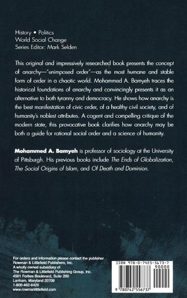 This original and impressively researched book explores the concept of anarchy—"unimposed order"—as the most humane and stable form of order in a chaotic world. Mohammed A. Bamyeh traces the historical foundations of anarchy and convincingly presents it as an alternative to both tyranny and democracy. He shows how anarchy is the best manifestation of civic order, of a healthy civil society, and of humanity's noblest attributes. A cogent and compelling critique of the modern state, this provocative book clarifies how anarchy may be both a guide for rational social order and a science of humanity.