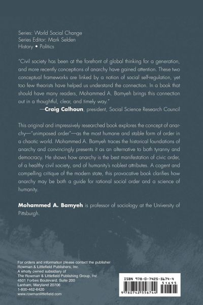 This original and impressively researched book explores the concept of anarchy—"unimposed order"—as the most humane and stable form of order in a chaotic world. Mohammed A. Bamyeh traces the historical foundations of anarchy and convincingly presents it as an alternative to both tyranny and democracy. He shows how anarchy is the best manifestation of civic order, of a healthy civil society, and of humanity's noblest attributes. A cogent and compelling critique of the modern state, this provocative book clarifies how anarchy may be both a guide for rational social order and a science of humanity.