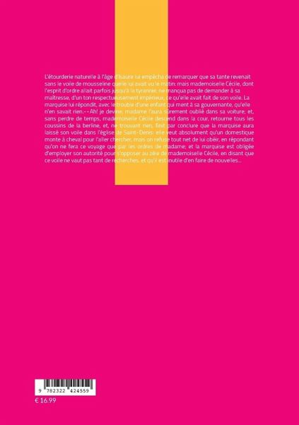 L'étourderie naturelle à l'âge d'Isaure lui empêcha de remarquer que sa tante revenait sans le voile de mousseline quelle lui avait vu le matin: mais mademoiselle Cécile, dont l'esprit d'ordre allait parfois jusqu'à la tyrannie, ne manqua pas de demander à sa maîtresse, d'un ton respectueusement impérieux, ce qu'elle avait fait de son voile. La marquise lui répondit, avec le trouble d'une enfant qui ment à sa gouvernante, qu'elle n'en savait rien.--Ah! je devine, madame l'aura sûrement oublié dans sa voiture; et, sansperdre de temps, mademoiselle Cécile descend dans la cour, retourne tous les coussins de la berline, et, ne trouvant rien, finit par conclure que la marquise aura laissé son voile dans l'église de Saint-Denis: elle veut absolument qu'un domestique monte à cheval pour l'aller chercher, mais on refuse tout net de lui obéir, en répondant qu'on ne fera ce voyage que par les ordres de madame; et la marquise est obligée d'employer son autoritépour s'opposer au zèle de mademoiselle Cécile, en disant que ce voile ne vaut pas tant de recherches, et qu'il est inutile d'en faire de nouvelles.