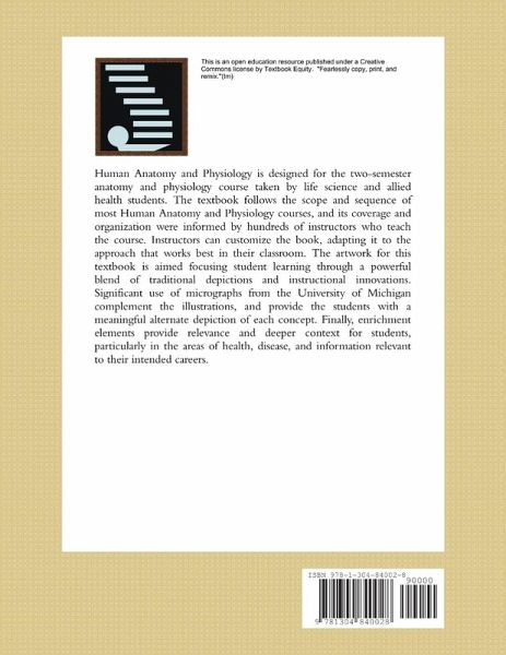 Human Anatomy and Physiology is designed for the two-semester anatomy and physiology course taken by life science and allied health students. The textbook follows the scope and sequence of most Human Anatomy and Physiology courses, and its coverage and organization were informed by hundreds of instructors who teach the course. Instructors can customize the book, adapting it to the approach that works best in their classroom. The artwork for this textbook is aimed focusing student learning through a powerful blend of traditional depictions and instructional innovations. Significant use of micrographs from the University of Michigan complement the illustrations, and provide the students with a meaningful alternate depiction of each concept. Finally, enrichment elements provide relevance and deeper context for students, particularly in the areas of health, disease, and information relevant to their intended careers