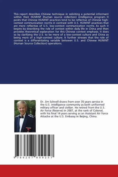 This report describes Chinese technique in soliciting a potential informant within their HUMINT (human source collection) intelligence program. It posits that Chinese HUMINT practices tend to be reflective of Chinese high-context communication norms in contrast with U.S. HUMINT practices that are more reflective of U.S. low-context communication norms. As such it begins by describing the role of context within daily life in China and then provides theoretical explanation for this Chinese context emphasis. It does so by clarifying the U.S. to be more of a low-context culture and China as being more of a high-context culture. It further stresses that the role of context is a differentiating variable between U.S. and Chinese HUMINT (Human Source Collection) operations.