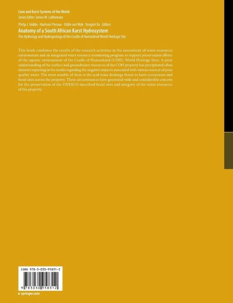 This book combines the results of the research activities in the assessment of water resources environment and an integrated water resource monitoring program to support preservation efforts of the aquatic environment of the Cradle of Humankind (COH), World Heritage Sites. A poor understanding of the surface and groundwater resources of the COH property has precipitated often alarmist reporting in the media regarding the negative impacts associated with various sources of poor quality water. The most notable of these is the acid mine drainage threat to karst ecosystems and fossil sites across the property. These circumstances have generated wide and considerable concern for the preservation of the UNESCO-inscribed fossil sites and integrity of the water resources of the property.