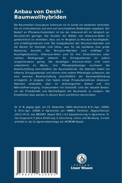 Die Baumwollart Gossypium arboreum ist im Lande am weitesten verbreitet. Sie ist stresstolerant und wird auf verschiedenen Bodentypen angebaut. Der Bedarf an Pflanzenschutzmitteln ist bei der Arboreum-Art im Vergleich zur Hirsutum-Art geringer. Die Struktur der Blätter von Arboreum-Arten ist gentechnisch so verändert, dass sie im Vergleich zu Hirsutum feuchtigkeits- und schädlingstolerant sind. Die Saatgutkosten der Hirsutum-Hybriden und die Kosten für Pestizide sind höher, was für die Landwirte eine große Belastung darstellt. Die Hirsutum-Hybriden sind anfälliger für Feuchtigkeitsstress. Arboreum-Arten sind für ihre Stresstoleranz unter solchen Bedingungen bekannt. Ihr Ertragspotenzial ist jedoch vergleichsweise gering. Die derzeitigen Arboreum-Arten sind meist unbestimmt im Wuchs, ihre Pflanzenphänologie erschwert die Bewirtschaftung einschließlich der Baumwollernte. Die Hybriden haben ein höheres Ertragspotenzial und können eine andere Phänologie aufweisen, die eine bessere Bewirtschaftung einschließlich der Baumwollpflückung ermöglicht. In jüngster Zeit haben einige Privatunternehmen Arboreum-Hybriden entwickelt, aber ihr phänologischer Bedarf und ihre Nährstoffversorgung, insbesondere mit Stickstoff, sind der aktuelle Bedarf, um die Produktivität und Nachhaltigkeit der Baumwolle zu steigern. Die Einzelheiten dazu werden in diesem Buch ausführlich beschrieben.