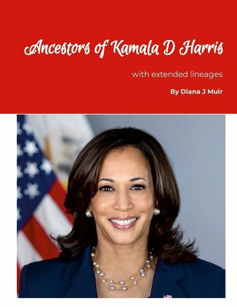 The ancestry of Kamala D Harris, the first female Vice-President of the United States, a woman of color, has been the subject of many debates. This authoritative volume delineates her ancestry of both her mother (from India) and her father (from Jamaica with both African heritage and an Irish great-great-grandfather). While some of the lines are quite short, due to the absence of records, her distant Irish ancestry leads back to Rollo from Denmark and Normandy, William the Conqueror, to the Kings and Queens of Scotland, Spain, Iran and Iraq, Ireland, and the high priests of Jerusalem. It can be traced back to Methuselah, Julius Caesar of Rome, Grand Druids, Kings of Sparta and Wales, as well as many other far-off places. Enjoy the journey as you take the journey with her family over time and space.