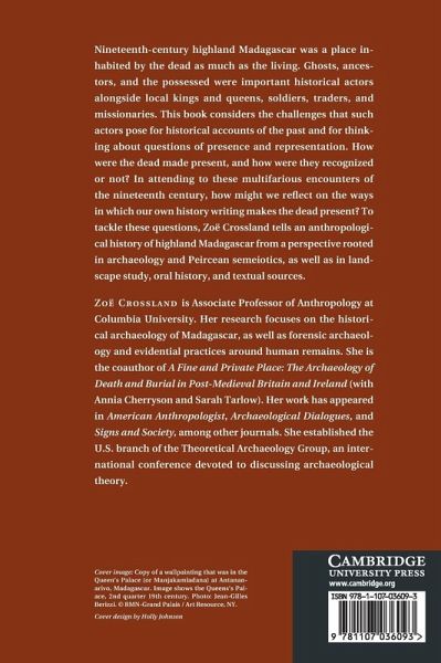 Nineteenth-century highland Madagascar was a place inhabited by the dead as much as the living. Ghosts, ancestors and the possessed were important historical actors alongside local kings and queens, soldiers, traders and missionaries. This book considers the challenges that such actors pose for historical accounts of the past and for thinking about questions of presence and representation. How were the dead made present, and how were they recognized or not? In attending to these multifarious encounters of the nineteenth century, how might we reflect on the ways in which our own history-writing makes the dead present? To tackle these questions, Zoë Crossland tells an anthropological history of highland Madagascar from a perspective rooted in archaeology and Peircean semiotics, as well as in landscape study, oral history and textual sources.