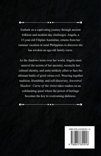 Embark on a captivating journey through ancient folklore and modern-day challenges. Angela, a 15-year-old Filipino Australian, returns from her summer vacation in rural Philippines to discover she has awoken an age-old family curse. As the shadows loom over her world, Angela must unravel the secrets of her ancestry, reconcile her cultural identity, and unite unlikely allies to face the ultimate battle of good versus evil. Weaving together tradition, friendship, and self-discovery, Ancestral Shadow: Curse of the Anito takes readers on an exhilarating quest where the power of heritage becomes the key to overcoming darkness.