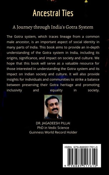 The Gotra system, which traces lineage from a common male ancestor, is an important aspect of social identity in many parts of India. This book aims to provide an in-depth understanding of the Gotra system in India, including its origins, significance, and impact on society and culture. We hope that this book will serve as a valuable resource for those interested in understanding the Gotra system and its impact on Indian society and culture. It will also provide insights for individuals and communities to strike a balance between preserving their Gotra heritage and promoting inclusivity and equality in society.