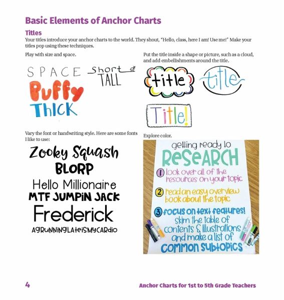 Filled with 100 ready-to-use, fun and helpful anchor charts, this handbook for elementary teachers is packed with examples for science, reading, math, classroom management, and so much more. There are easy-to-follow tips and time-saving tricks for taking your charts to the next level. Whether you're creating your very first chart or looking for fresh ideas, there's something for everyone, including: ¿ Eye-Catching Designs ¿ Helpful Ideas ¿ Clever Visuals ¿ Friendly Facts