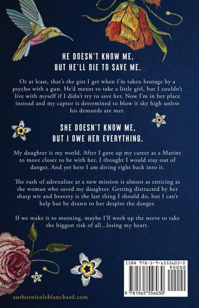 From New York Times and USA Today bestselling author Nicole Blanchard comes a small town military romantic thriller where a single dad will risk everything to rescue a woman in need. He doesn't know me, but he'll die to save me. Or at least, that's the gist I get when I'm taken hostage by a psycho with a gun. He'd meant to take a little girl, but I couldn't live with myself if I didn't try to save her. Now I'm in her place instead and my captor is determined to blow it sky high unless his demands are met. She doesn't know me, but I owe her everything. My daughter is my world. After I gave up my career as a Marine to move closer to be with her, I thought I would stay out of danger. And yet here I am diving right back into it. The rush of adrenaline at a new mission is almost as enticing as the woman who saved my daughter. Getting distracted by her sharp wit and bravery is the last thing I should do, but I can't help but be drawn to her despite the danger. If we make it to morning, maybe I'll work up the nerve to take the biggest risk of all...losing my heart. Anchor takes place in the First to Fight series, but may be read as a standalone.