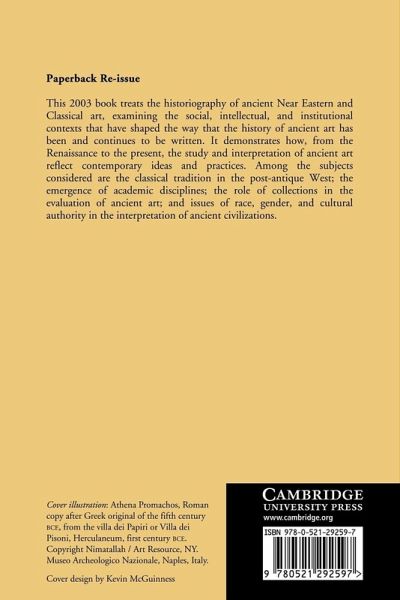 This 2003 book treats the historiography of ancient Near Eastern and Classical art, examining the social, intellectual and institutional contexts that have shaped the way that the history of ancient art has been and continues to be written. It demonstrates how, from the Renaissance to the time of publication, the study and interpretation of ancient art reflect contemporary ideas and practices. Among the subjects considered are the classical tradition in the post-antique West; the emergence of academic disciplines; the role of collections in the evaluation of ancient art; and issues of race, gender, and cultural authority in the interpretation of ancient civilisations.