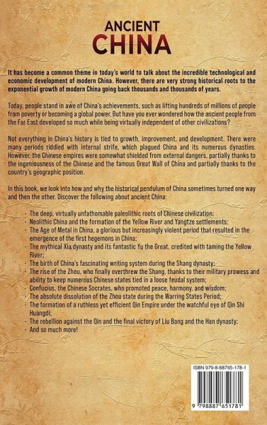 It has become a common theme in today's world to talk about the incredible technological and economic development of modern China. However, there are very strong historical roots to the exponential growth of modern China going back thousands and thousands of years. Today, people stand in awe of China's achievements, such as lifting hundreds of millions of people from poverty or becoming a global power. But have you ever wondered how the ancient people from the Far East developed so much while being virtually independent of other civilizations? Not everything in China's history is tied to growth, improvement, and development. There were many periods riddled with internal strife, which plagued China and its numerous dynasties. However, the Chinese empires were somewhat shielded from external dangers, partially thanks to the ingeniousness of the Chinese and the famous Great Wall of China and partially thanks to the country's geographic position. In this book, we look into how and why the historical pendulum of China sometimes turned one way and then the other. Discover the following about ancient China: The deep, virtually unfathomable paleolithic roots of Chinese civilization; Neolithic China and the formation of the Yellow River and Yangtze settlements; The Age of Metal in China, a glorious but increasingly violent period that resulted in the emergence of the first hegemons in China; The mythical Xia dynasty and its fantastic Yu the Great, credited with taming the Yellow River; The birth of China's fascinating writing system during the Shang dynasty; The rise of the Zhou, who finally overthrew the Shang, thanks to their military prowess and ability to keep numerous Chinese states tied in a loose feudal system; Confucius, the Chinese Socrates, who promoted peace, harmony, and wisdom; The absolute dissolution of the Zhou state during the Warring States Period; The formation of a ruthless yet efficient Qin Empire under the watchful eye of Qin Shi Huangdi; The rebellion against the Qin and the final victory of Liu Bang and the Han dynasty; And so much more!