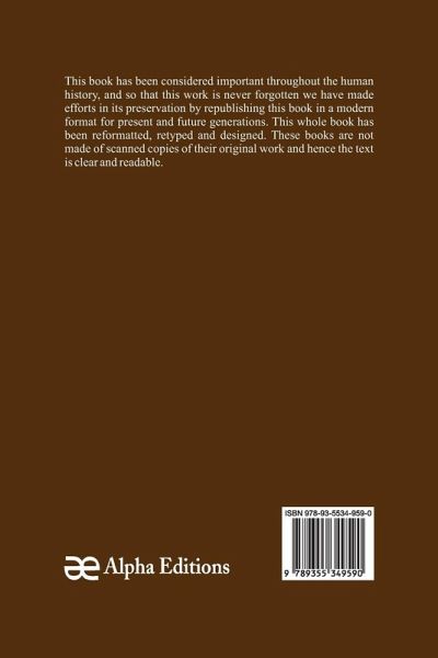 This book has been considered important throughout the human history, and so that this work is never forgotten we have made efforts in its preservation by republishing this book in a modern format for present and future generations. This whole book has been reformatted, retyped and designed. These books are not made of scanned copies and hence the text is clear and readable.