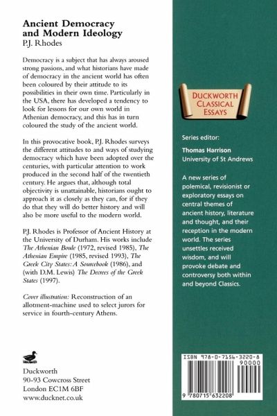 How should we study the democracy of classical Athens? How, if at all, is it relevant to our own world with its different forms of democracy? Attitudes to Athenian democracy have always been affectd by the circumstances of those studying it; but, after a period in which scholars professed objectivity and impartiality as their ideal, the possibility of attaining that ideal has been questioned, and ideological commitment and relevance to contemporary circumstances have returned into fashion. This book traces developments in the study of Athenian democracy, examines the different approaches adopted in recent times, and argues that the conscious pursuit of relevance makes for bad history and that, although total objectivity is unattainable, studies which make that an ideal to be approached are likely to do more justice to the subject and also to be more useful in our world.