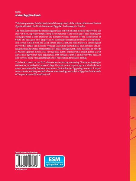 Next, the book features a chronological survey that details the material, typology (including the technical peculiarities), use, arrangement and pictorial representation of beads throughout the nine divisions or periods of Ancient Egyptian history. This survey points out the characteristics of each period as well any contact Egypt may have experienced with foreign countries as shown by the beads. It also corrects much wrong identifications of materials and mistaken datings.