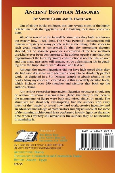 Out of all the books on Egypt, this one reveals much of the highly detailed methods the Egyptians used in building their stone constructions. We often marvel at the incredible structures they built, not knowing exactly how it was done. The Great Pyramid's construction still remains a mystery to many people as far as the lifting of the stones to such great heights is concerned. To this day interesting theories abound, but no absolute proof, or a recreation of the true methods used, have ever been demonstrated. The authors openly state that their explanation of the Great Pyramid's construction is not the final answer and that many mysteries still remain, yet do a fascinating job in detailing how the huge stones were dressed and laid out. Even though the ancient Egyptians did not have high speed drills, they still had used drills that were adequate enough to do such absolutely perfect work -- as depicted in a 5th Dynasty temple in Abusir (found later in the book). Many mysteries are cleared up in this incredibly detailed book, which includes over 250 sketches and pictures that back up the author's claims. Any serious researcher into ancient Egyptian structures should not be without this book. It seems at first glance that many of the incredible monuments of Egypt were built and raised almost by magic. The structures are absolutely awe-inspiring, but the authors strip away much of the "magic" to reveal how hard work, creative ingenuity, and an advanced knowledge of mathematics and physics account for some of the amazing architectural feats performed in early Egypt. At the same time, when a mystery still remains for the authors, they do not hesitate in admitting it.