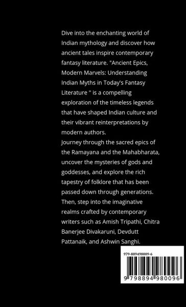 This comprehensive guide begins with an exploration of the foundational texts and themes of Indian mythology. Delve into the Ramayana and the Mahabharata, discover the rich pantheon of Hindu deities, and uncover the symbolic meanings behind cosmological myths and folklore. Transitioning into the realm of contemporary literature, the book highlights the works of acclaimed authors who have drawn inspiration from these ancient tales. Key features of this book include: 1. Comparative Analysis: Side-by-side comparisons of mythological themes and their adaptations in modern fantasy literature. 2. Author Spotlights: In-depth studies of prominent authors like Amish Tripathi, Chitra Banerjee Divakaruni, Devdutt Pattanaik, and Ashwin Sanghi, exploring their unique approaches to retelling myths. 3. Thematic Insights: Discussions on morality, dharma, and the portrayal of women in both ancient and contemporary narratives. 4. Case Studies: Detailed examinations of notable works, such as "The Secret of the Nagas," "The Krishna Key," and "Arjuna: Saga of a Pandava Warrior-Prince." 5. Cultural Context: Understanding the cultural significance of these stories and their adaptations in modern pop culture.