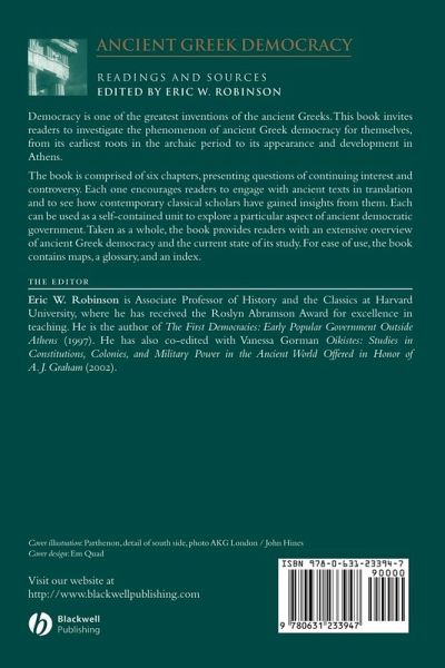 This book invites readers to join in a fresh and extensive investigation of one of Ancient Greece's greatest inventions: democratic government. Provides an accessible, up-to-date survey of vital issues in Greek democracy. Covers democracy's origins, growth and essential nature. Raises questions of continuing interest. Combines ancient texts in translation and recent scholarly articles. Invites the reader into a process of historical investigation. Contains maps, a glossary and an index.