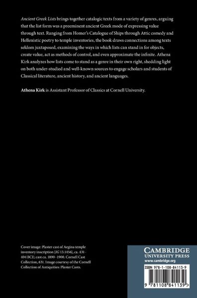 Ancient Greek Lists brings together catalogic texts from a variety of genres, both literary and epigraphic, arguing that the list form was the ancient mode of expressing value through text. Of immense value to students and scholars of Classical literature, ancient history, and ancient languages.