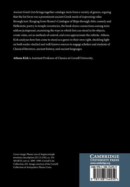 Ancient Greek Lists brings together catalogic texts from a variety of genres, both literary and epigraphic, arguing that the list form was the ancient mode of expressing value through text. Of immense value to students and scholars of Classical literature, ancient history, and ancient languages.