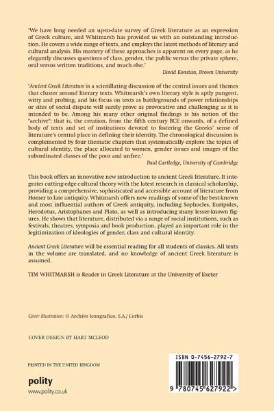 In this book, Tim Whitmarsh offers an innovative new introduction to ancient Greek literature. The volume integrates cutting--edge cultural theory with the latest research in classical scholarship, providing a comprehensive, sophisticated and accessible account of literature from Homer to late antiquity.