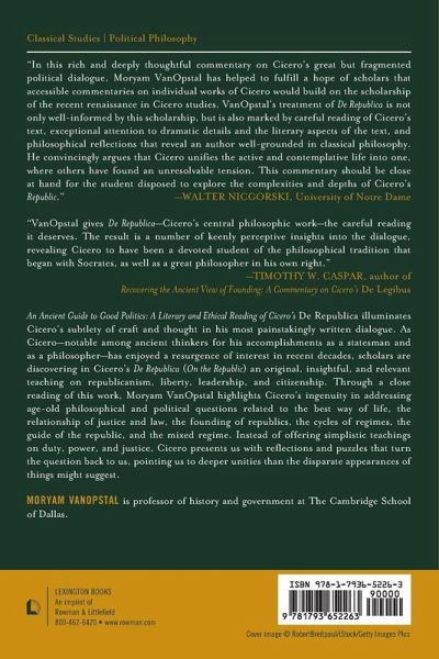 In An Ancient Guide to Good Politics: A Literary and Ethical Reading of Cicero's De Republica, Moryam VanOpstal argues that Cicero should be considered the great unifier of classical political thought, with fresh insight on pivotal issues such as the best way of life and how to preserve a good regime.