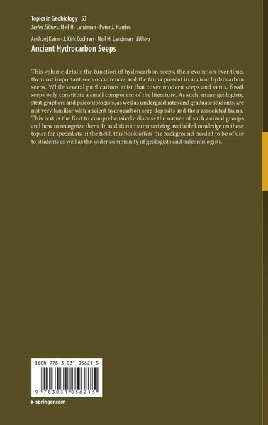 This volume details the function of hydrocarbon seeps, their evolution over time, the most important seep occurrences and the fauna present in ancient hydrocarbon seeps. While several publications exist that cover modern seeps and vents, fossil seeps only constitute a small component of the literature. As such, many geologists, stratigraphers and paleontologists, as well as undergraduates and graduate students, are not very familiar with ancient hydrocarbon seep deposits and their associated fauna. This text is the first to comprehensively discuss the nature of such animal groups and how to recognize them. In addition to summarizing available knowledge on these topics for specialists in the field, this book offers the background needed to be of use to students as well as the wider community of geologists and paleontologists.