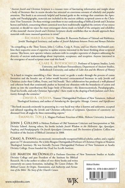 Ancient Jewish and Christian Scriptures examines the writings included in and excluded from the Jewish and Christian canons of Scripture and explores the social settings in which some of this literature was viewed as authoritative and some was viewed either as uninspired or as heretical. John J. Collins, Craig A. Evans, and Lee Martin McDonald examine how those noncanonical writings demonstrate the historical, literary, and religious aspects of the culture that gave rise to the writings. They also show how literature excluded from the Jewish and Christian canons of Scripture remains valuable today for understanding the questions and conflicts that early Jewish and Christian faith communities faced. Through this discussion, contemporary readers acquire a broader understanding of biblical Scripture and of Jewish and Christian faith inspired by Scripture.