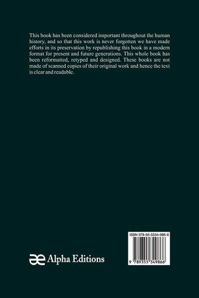 This book has been considered important throughout the human history, and so that this work is never forgotten we have made efforts in its preservation by republishing this book in a modern format for present and future generations. This whole book has been reformatted, retyped and designed. These books are not made of scanned copies and hence the text is clear and readable.