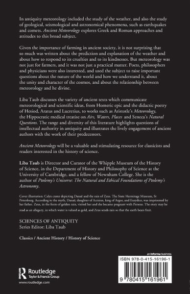 The first book of its kind in English, Ancient Meteorology discusses Greek and Roman approaches and attitudes to this broad discipline, which in classical antiquity included not only 'weather', but occurrences such as earthquakes and comets that today would be regarded as geological, astronomical or seismological. The range and diversity of this literature highlights the question of scholarly authority in antiquity and illustrates how writers responded to the meteorological information presented by their literary predecessors. Ancient Meteorology will be a valuable reference tool for classicists and those with an interest in the history of science.