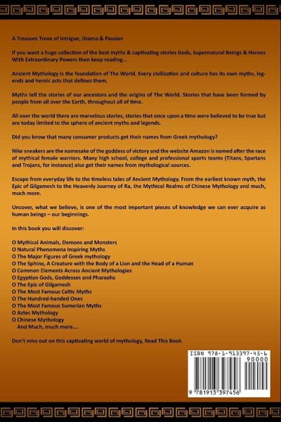 A Treasure Trove of Intrigue, Drama & Passion If you want a huge collection of the best myths & captivating stories Gods, Supernatural Beings & Heroes With Extraordinary Powers then keep reading… Ancient Mythology is the foundation of The World. Every civilization and culture has its own myths, legends and heroic acts that defines them. Myths tell the stories of our ancestors and the origins of The World. Stories that have been formed by people from all over the Earth, throughout all of time. All over the world there are marvelous stories, stories that once upon a time were believed to be true but are today limited to the sphere of ancient myths and legends. Did you know that many consumer products get their names from Greek mythology? Nike sneakers are the namesake of the goddess of victory and the website Amazon is named after the race of mythical female warriors. Many high school, college and professional sports teams (Titans, Spartans and Trojans, for instance) also get their names from mythological sources. Escape from everyday life to the timeless tales of Ancient Mythology. From the earliest known myth, the Epic of Gilgamesh to the Heavenly Journey of Ra, the Mythical Realms of Chinese Mythology and much, much more. In this book you will discover: Mythical Animals, Demons and Monsters Natural Phenomena Inspiring Myths The Major Figures of Greek mythology The Sphinx, A Creature with the Body of a Lion and the Head of a Human Common Elements Across Ancient Mythologies Egyptian Gods, Goddesses and Pharaohs The Epic of Gilgamesh The Most Famous Celtic Myths The Hundred-handed Ones The Most Famous Sumerian Myths Aztec Mythology And Much, much more…. Don't miss out on this captivating world of mythology, Read This Book