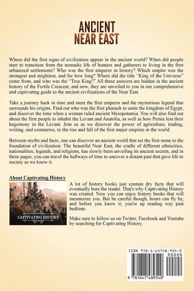 If you want to discover the captivating history of the ancient Near East, then keep reading... Where did the first signs of civilization appear in the ancient world? When did people start to transition from the nomadic life of hunters and gatherers to living in the first urbanized settlements? Who was the first emperor in history? Which empire was the strongest and mightiest, and for how long? Where did the title "King of the Universe" come from, and who was the "True King?" All these answers are hidden in the ancient history of the Fertile Crescent, and now, they are unveiled to you in our comprehensive and captivating guide to the ancient civilizations of the Near East. Take a journey back in time and meet the first emperor and the mysterious legend that surrounds his origins. Find out who was the first pharaoh to unite the kingdom of Egypt, and discover the time when a woman ruled ancient Mesopotamia. You will also find out about the first people to inhabit the Levant and Anatolia, as well as how Persia lost their hegemony in the Levant. Join us as we discover the power of agriculture, trading, writing, and commerce, to the rise and fall of the first major empires in the world. In Ancient Near East: A Captivating Guide to Ancient Civilizations of the Middle East, Including Regions Such as Mesopotamia, Ancient Iran, Egypt, Anatolia, and the Levant, you will discover topics such asMesopotamia: The Birth of the First Civilization Egypt: The Unification of Upper and Lower Egypt and the Birth of the Pharaohs Ancient Iran: From Early Urban Settlements to the Rise of the Elamites Anatolia: The Bridge Between Asia and Europe and the Rise of the Hittite Old Kingdom The Levant: The Kingdom of Ebla and the Cultures of the Ancient Levant The Rise of the Assyrian Empire and Babylon from the Ashes of Akkad The Old and New Kingdom of Egypt: Dynastic Egypt and the Rise of Power in the Banks of Nile The Middle and New Kingdoms of the Hittite: The Dark Ages and the Glory of the Hittite Empire Beyond the Wars and Thrones: The Everyday Life of Common People in the Ancient Near East The Birth of Religions in the Ancient Near East: The Cradle of Civilization and the Gods Politics and International Relations in the Fertile Crescent And much, much more! So if you want to learn more about the ancient Near East, scroll up and click the "add to cart" button!